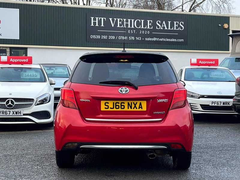 Toyota Yaris Design 1.5 VVT-h E-CVT Euro 6 5dr - Petrol/Hybrid Automatic Hatchback - ONLY 44,643 miles Here we have a stunning Yaris Hybrid Automatic with a two tone Red & Black Finish! The car comes with fantastic low running costs including Β£0 Road Tax and Combined 78 MPG. The spec on this includes a Reversing Camera, Rear Parking Sensors, Bluetooth, Rear Privacy Glass, 16" Alloys, DAB Radio & A LOT LOT MORE! Get in touch today to book your test drive!π¦ Message For Finance Quotes π¦ This car has great specification as listed below Reversing CameraRear Parking SensorsKeyless IgnitionCruise ControlRear Privacy Glass16" Diamond Cut AlloysBluetooth& A LOT MORE!This car is supplied with π HPI CLEAR π 12 Months MOT π Fresh service π Full Valet & Paint Protection π 3 month / 3000 mile Warranty Please get in touch for a full video walk-around or for additional pictures. ALL THIS FOR Β£11,495 For anymore information please get in touch HT Vehicle Sales π² 01529 292 209π» sales@htvehiclesales. comπΈ @htvehiclesales π₯ www.htvehiclesales.comπKendal, LA9 6ES Show less